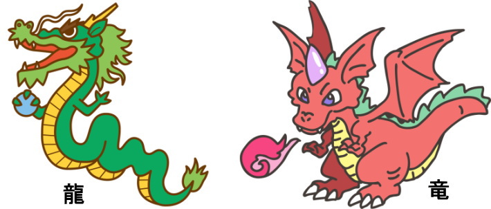 皆さんもイメージ的には違いを感じていると思いますが、「竜」は西洋のドラゴンですね。一方、「龍」は年賀状のイラストでも時々見かけますし、中華丼ぶりにもこのイラストが描かれているのも見かけます。だいたい中国的なものを感じますね。