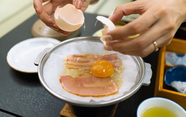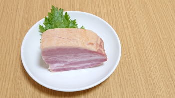 ベーコンの作り方は、豚肉の塊を塩漬け→熟成→燻製という工程になっています。ハムと違って「ボイル」工程がないので、かなりの脂肪が残ったままです。そのためベーコンに火を通すと美味しい油が染み出てくるので、ベーコンエッグなどではその油がいい味を指しますね。